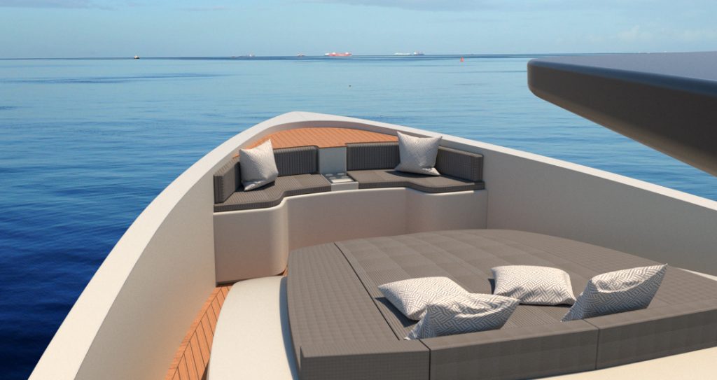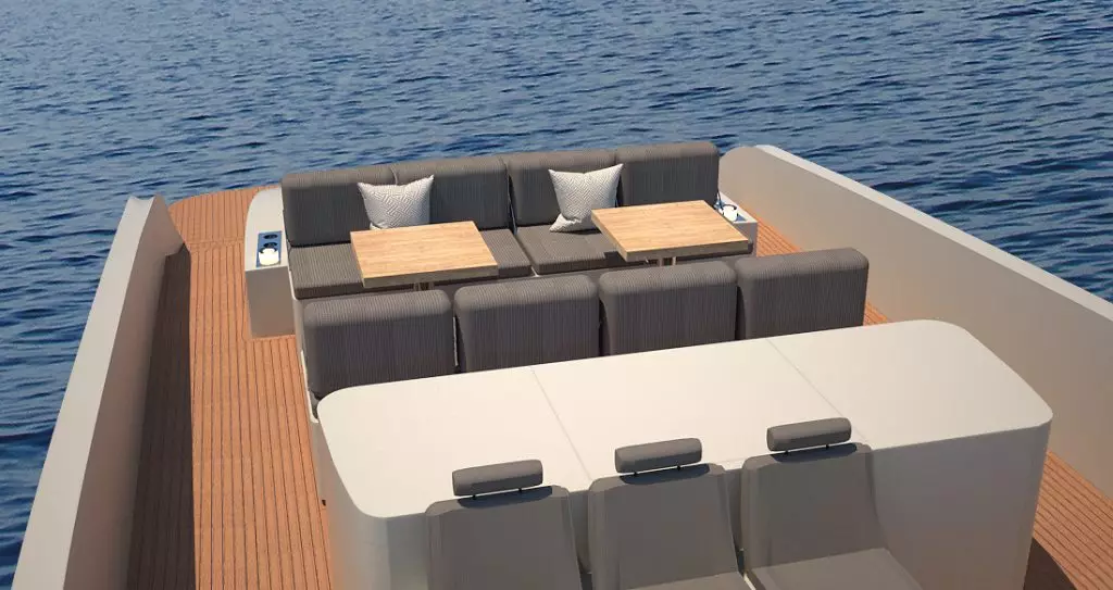This 12.90m open boat is a real show stopper and making headlines across Europe. Designed with outboard options – or in a Volvo IPS inboard version, it has a sleek design, combined with huge spacious areas thanks to the design of 'hidden' outboard engines under the day bed.