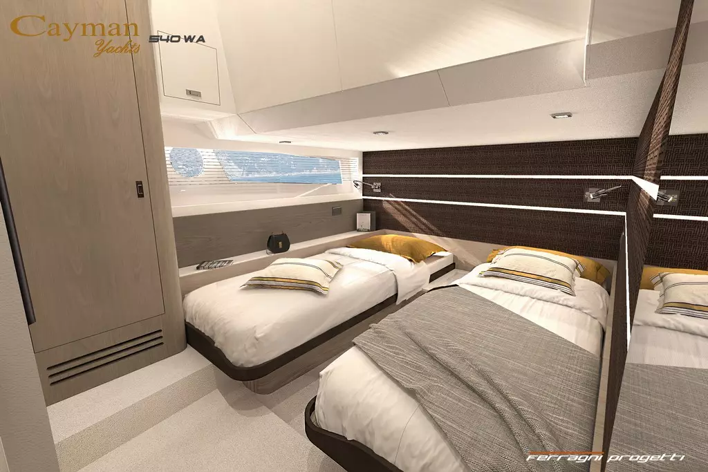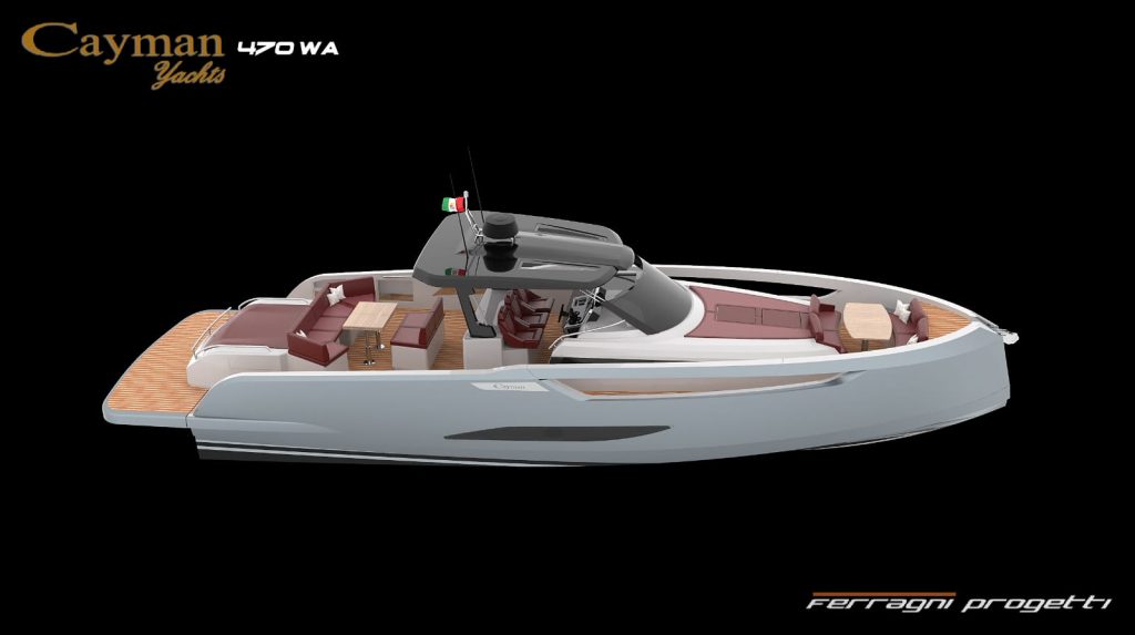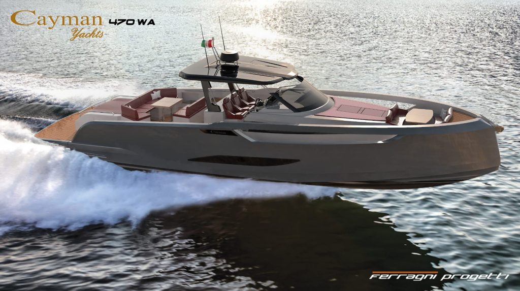The Cayman 470WA is the perfect balance between the 400WA & 540WA. Offering spacious room for entertaining with stunning design from the Ferragni creative studio, she ticks all the right boxes from practicality to style. Available in a huge range of specifications including outboard engines, this yacht can be configured to your every need.