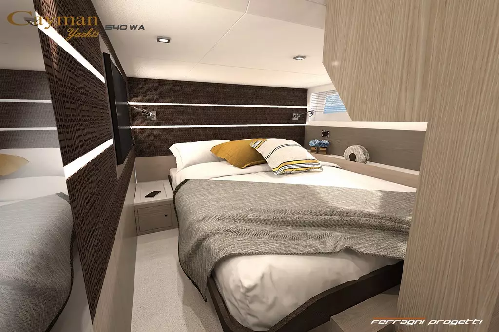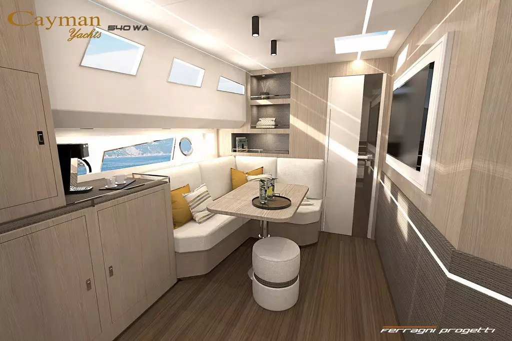 If you’re looking for a fast, spacious, and elegant yacht with the choice of IPS or ‘hidden’ outboard engines the Cayman 540WA stands out above the rest.