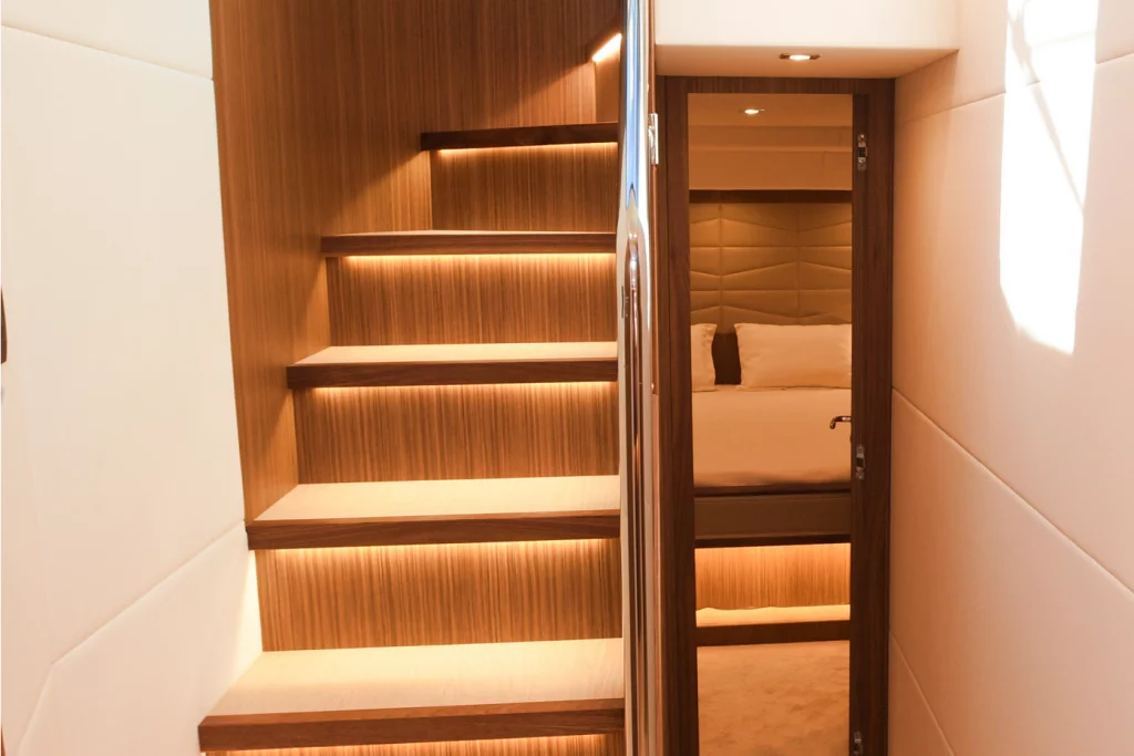 Discover this breathtaking yacht that has been designed to maximize space and functionality. The shape of the yacht allows you to take advantage of every inch, creating an open and airy feel throughout the entire vessel.