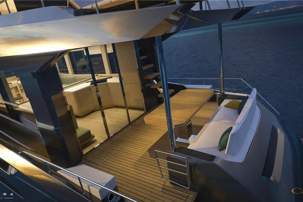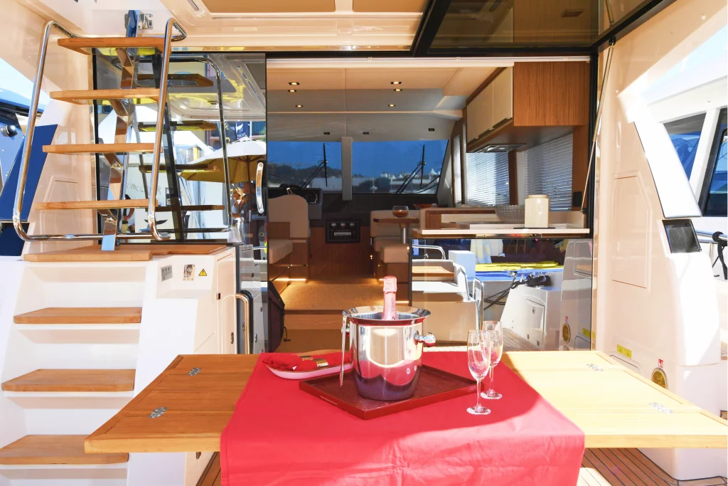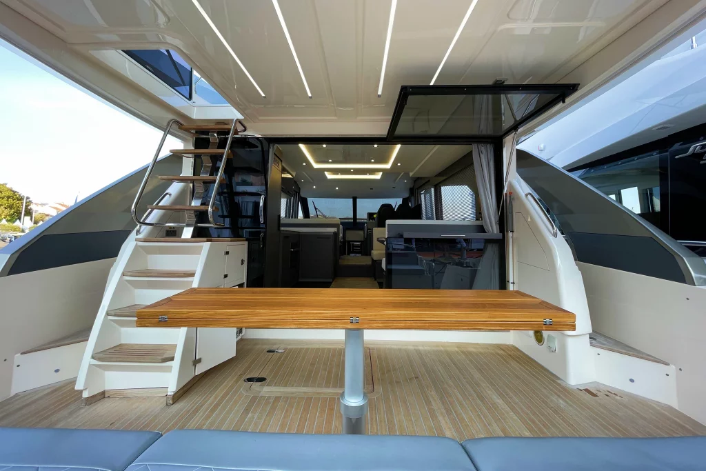 Discover this magnificent yacht that boasts an impressive flybridge that allows you to customize the configuration to your liking and create a truly personalized space.