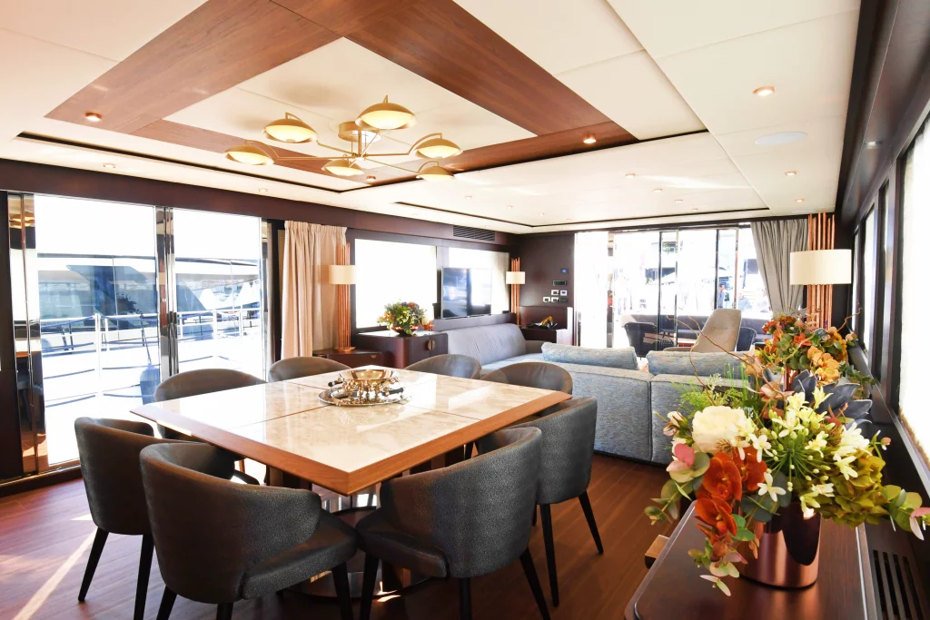 The main salon is one of the most naturally lit in the market, with large windows that provide panoramic views of the sea. The open floor plan allows for a spacious and inviting atmosphere, making it the perfect place to relax with friends and family.
